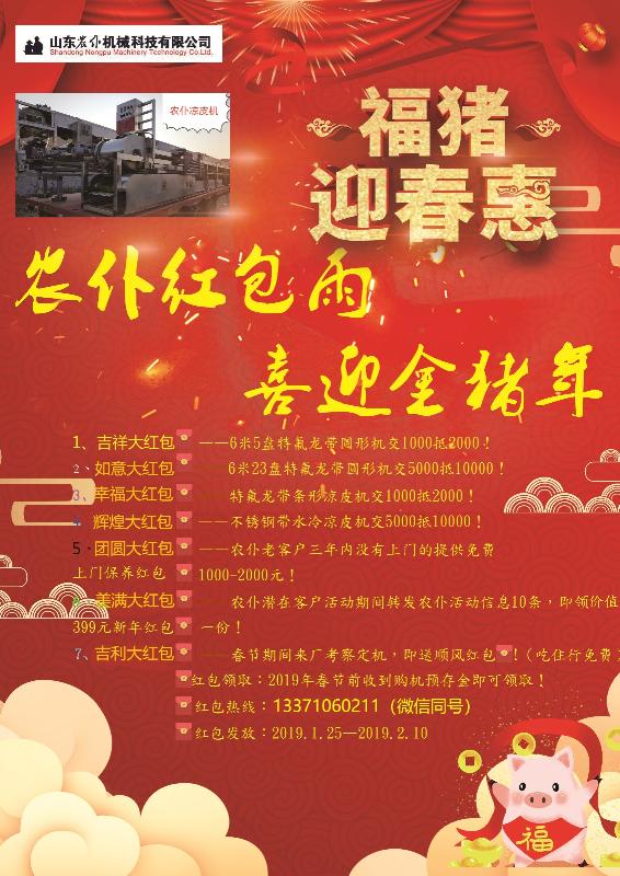 為迎接2019金豬年的到來(lái),讓更多的朋友用上農(nóng)仆涼皮機(jī);山東農(nóng)仆機(jī)械科技有限公司現(xiàn)隆重推出七重購(gòu)機(jī)大紅包,手慢無(wú)——